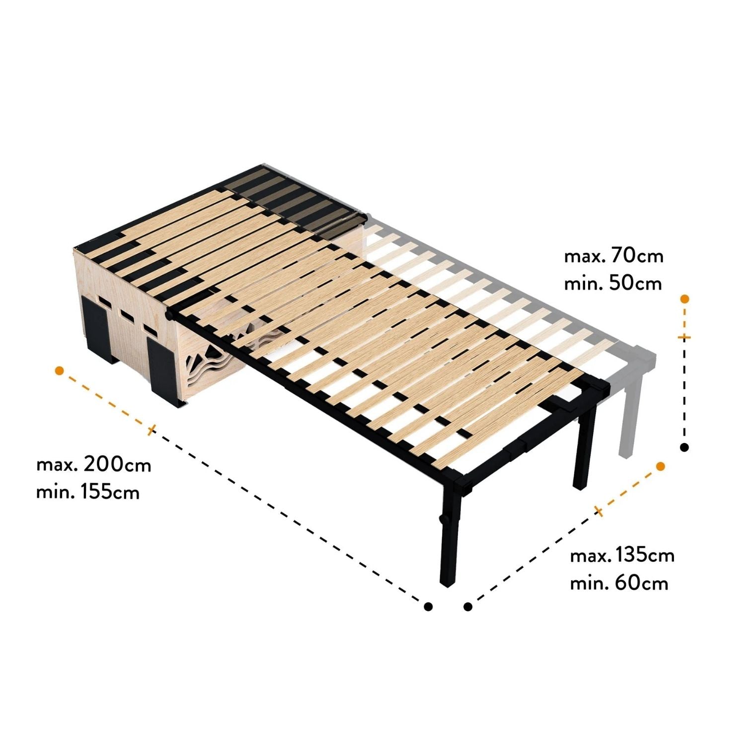 Encore une exclusivité Campinambulle : adaptez la longueur de votre couchage à la profondeur de votre véhicule. Dans les plus petits véhicules, le repli partiel vous permet de conduire sans replier intégralement votre couchage.