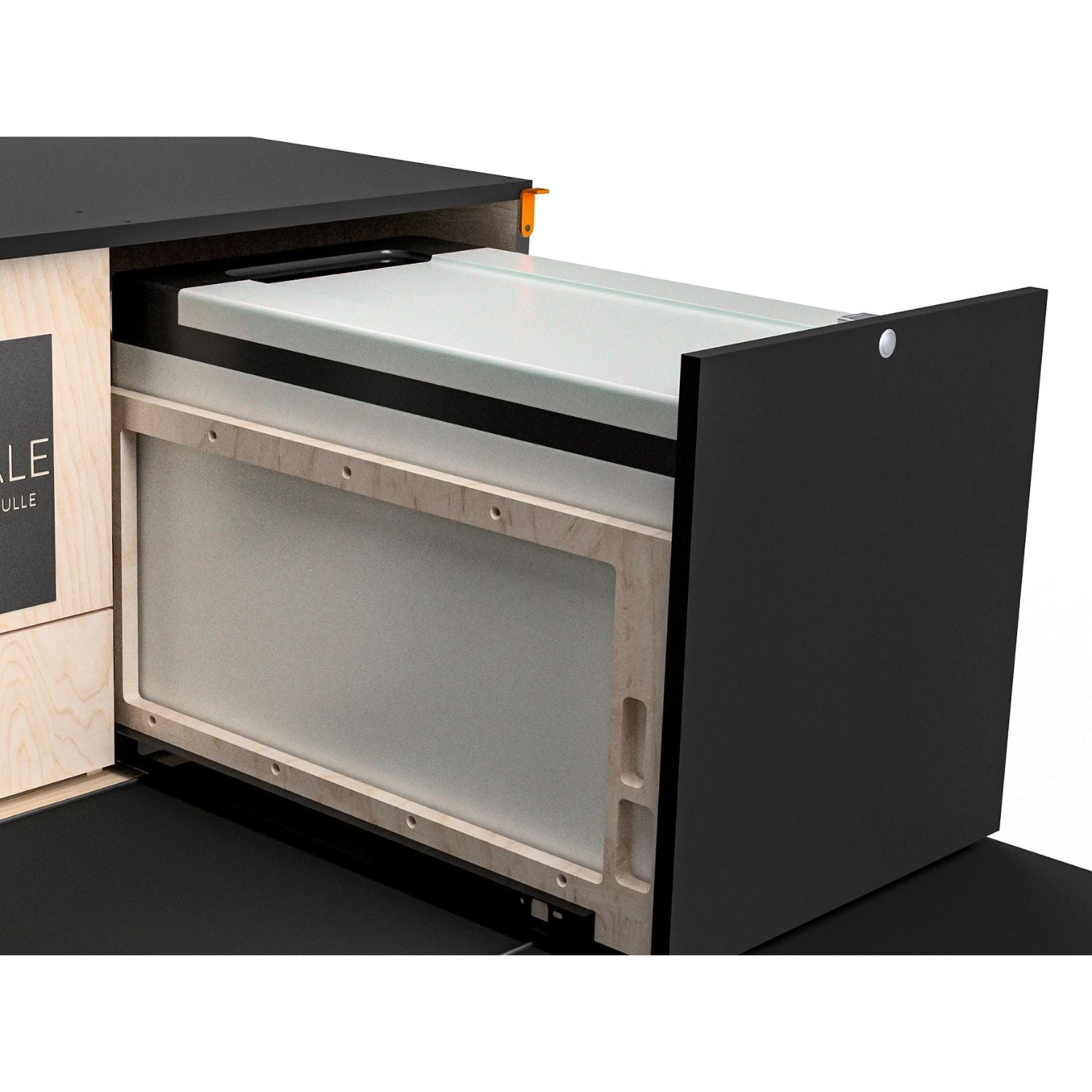 La façade amovible du tiroir permet de sortir le jerrican de 10 litres pour faire la vaisselle en toute simplicité. Propre !