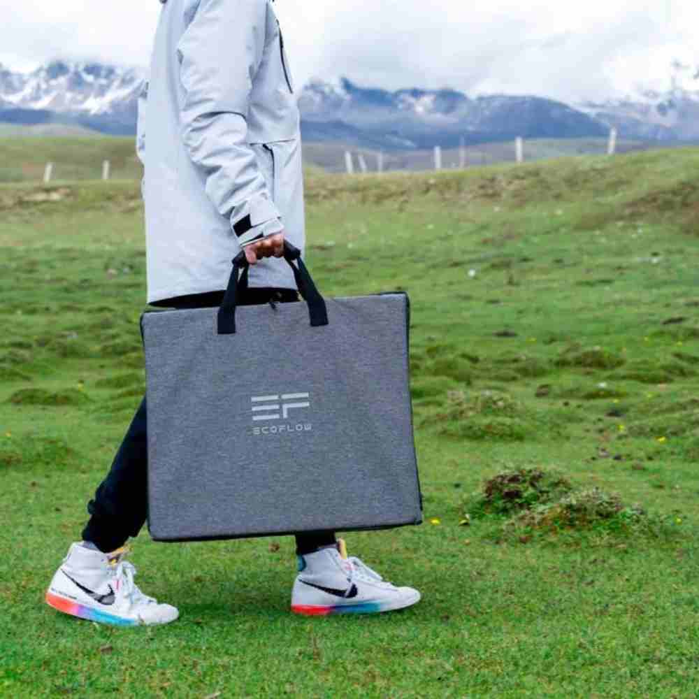Le panneau solaire est livré avec une mallette de transport qui assure sa protection pendant vos déplacements. Cette mallette peut également être utilisée comme support, vous permettant d'ajuster l'angle d'inclinaison du panneau solaire pour une exposition maximale au soleil, et de connecter plusieurs panneaux solaires ensemble sans aucun obstacle. Profitez de l'énergie solaire où que vous soyez, avec le panneau solaire EcoFlow.